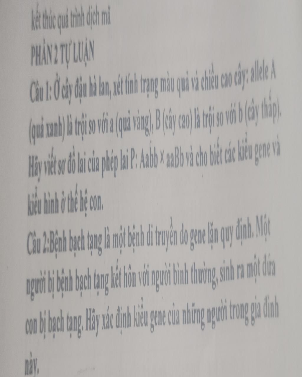 Câu 2 Bệnh bạch trong là một bệnh di truyền do gen lặn quy định.