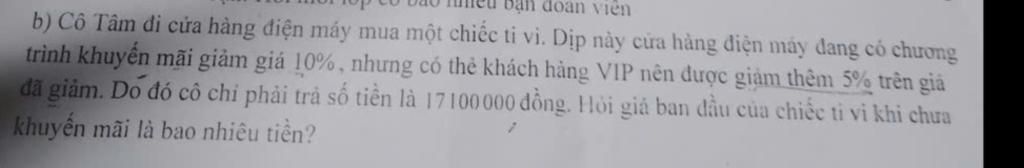 Vậy giá tiền chiếc tivi ban đầu là `20` triệu đồng