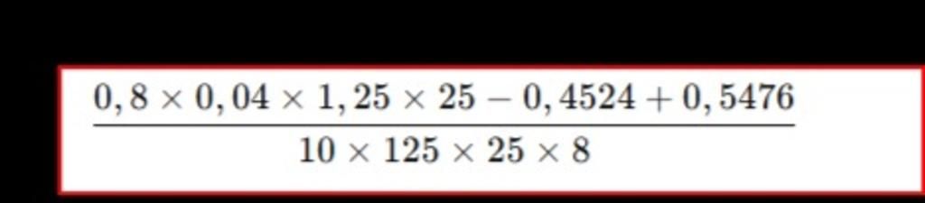 `\frac{0,8xx0,04xx1,25xx25-0,4524+0,5476}{10xx125xx25xx8}`