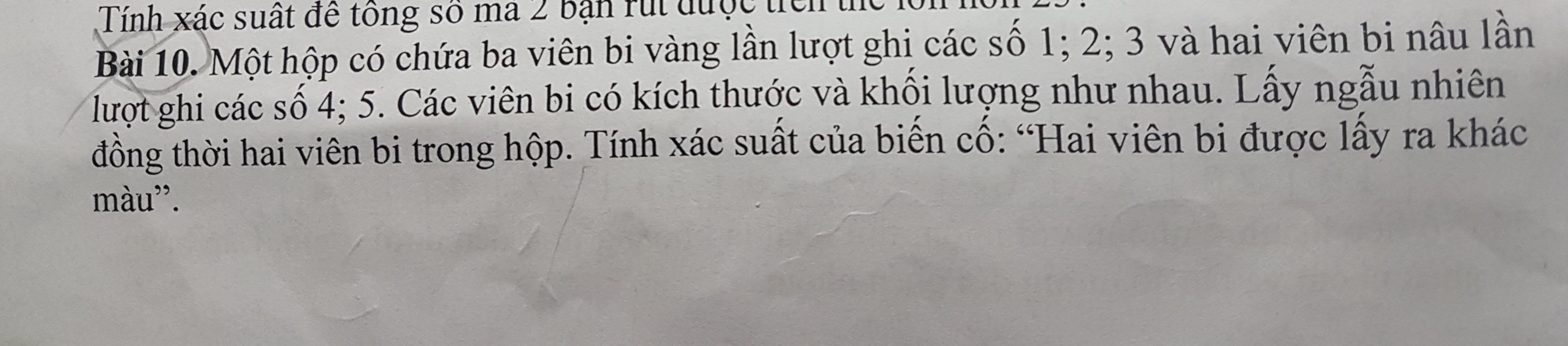 Xác suất biến cố hai viên bi lấy ra khác màu là: