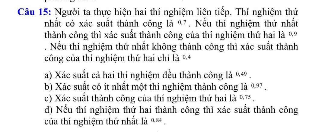 Câu 15: Người ta thực hiện hai thí nghiệm liên tiếp. Thí nghiệm thứ