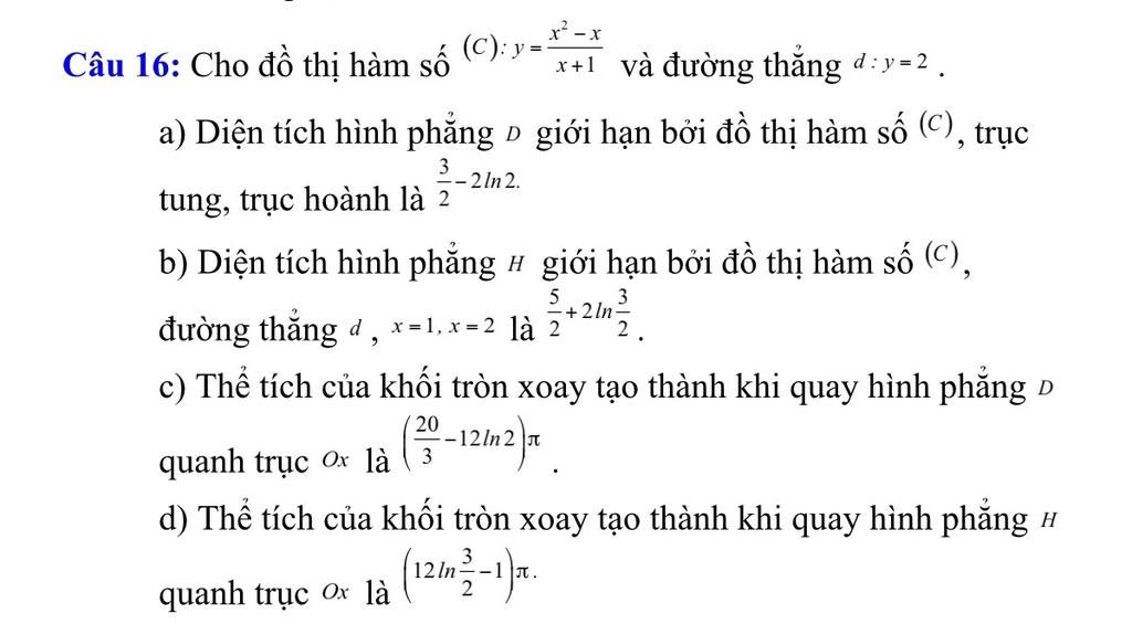 a) Diện tích hình phẳng D giới hạn bởi đồ thị hàm số (C),