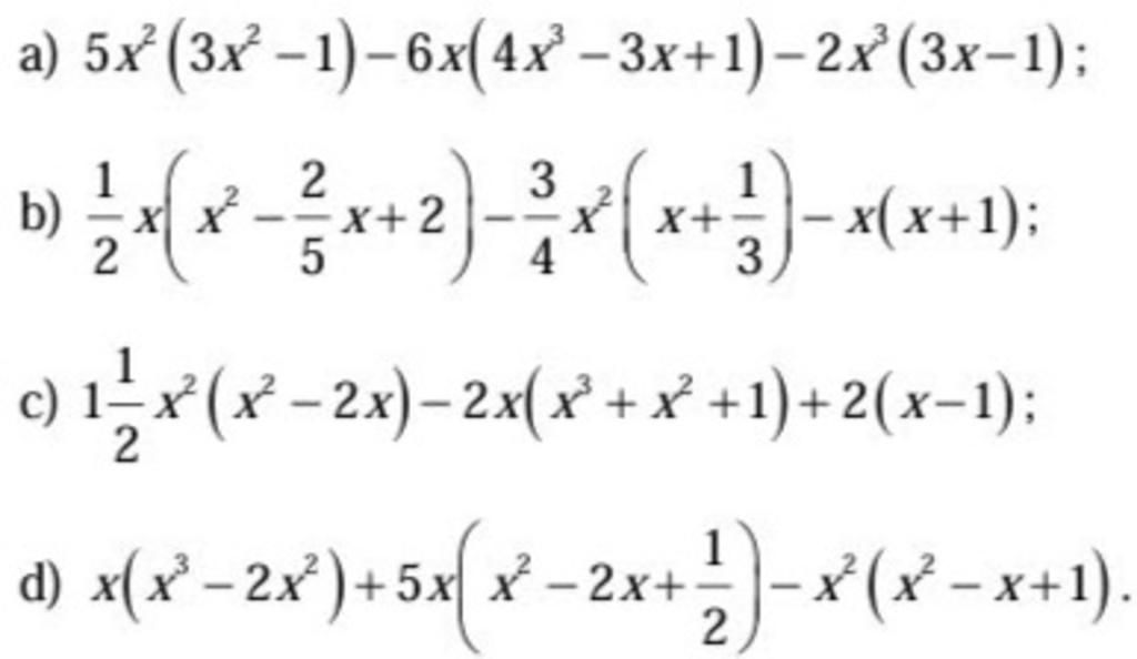 a) `5x^2(3x^2-1)-6x(4x^3-3x+1)-2x^3(3x-1)`