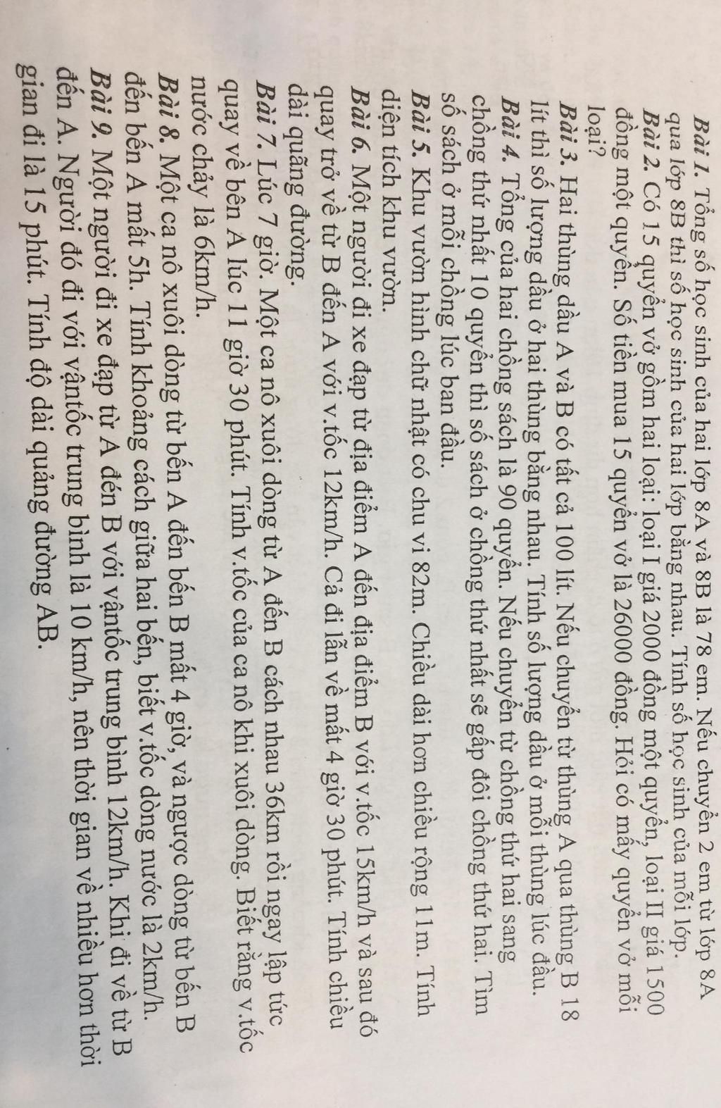 câu 10:một người đi xe máy từ A đến B với vận tốc 30km/h.Đến B người đó làm việc trong 1h rồi quay lại A với vận tốc 24km/h.Bt t/gian tổng cộng hết 5h30p.Tính quãng dường AB