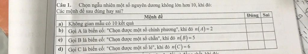 `*` Vì chọn ngẫu nhiên một số nguyên dương không lớn hơn `10` nên phần tử `(x)` của không gian mẫu `x <= 10.`