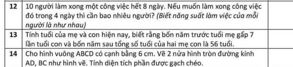 Muốn làm xg công vc tỏng `4` ngày cần số người là :