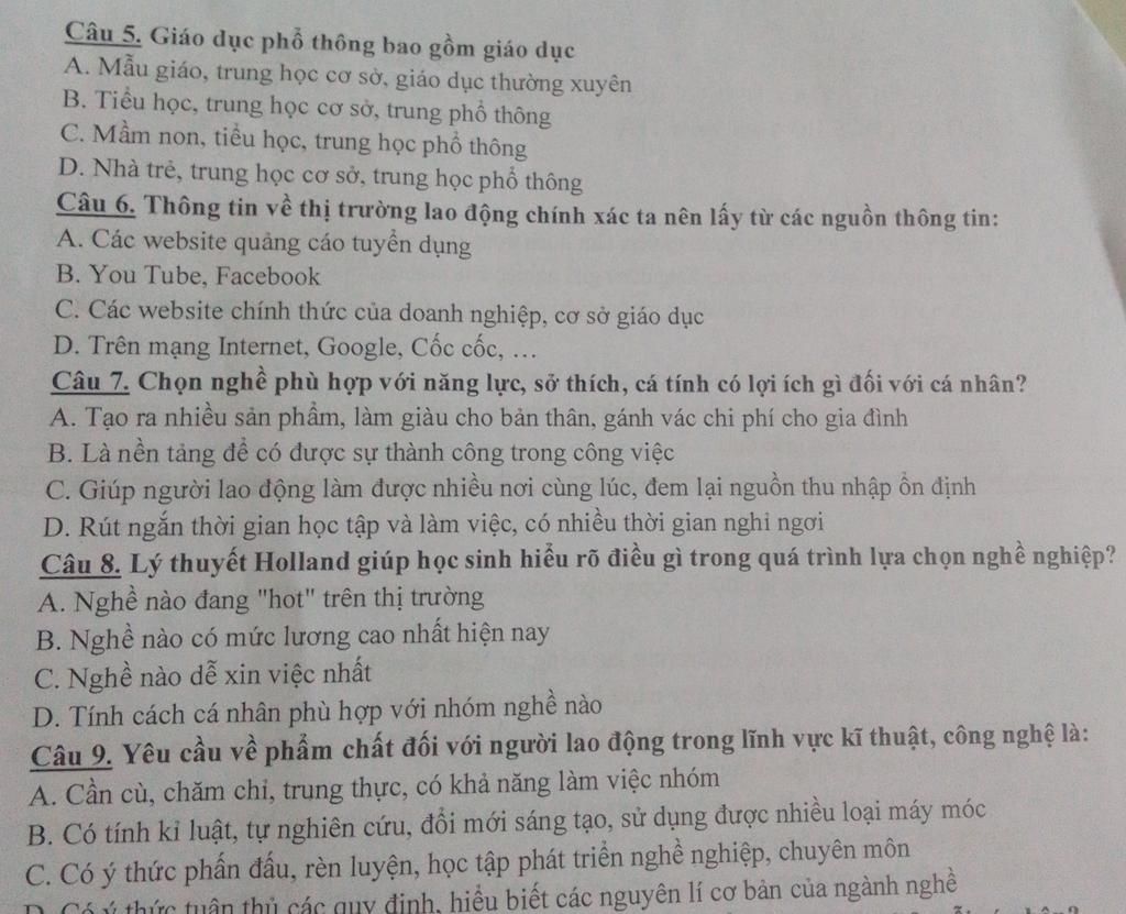 Câu 5. Giáo dục phổ thông bao gồm giáo dục