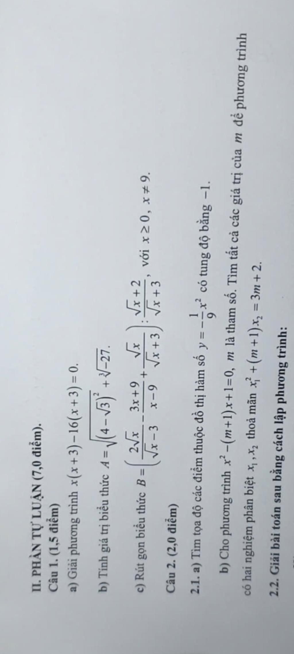 II. PHẦN TỰ LUẬN (7,0 điểm).