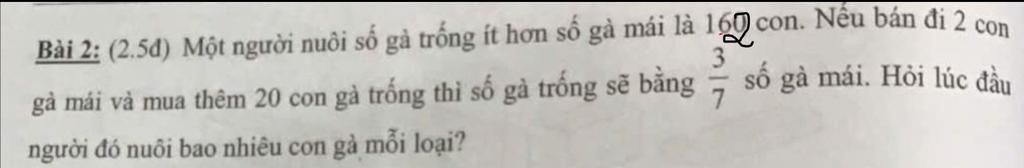 Nếu bán đi 2 con gà mái và mua thêm 20 con gà trống thì số gà mái hơn số gà trống là: