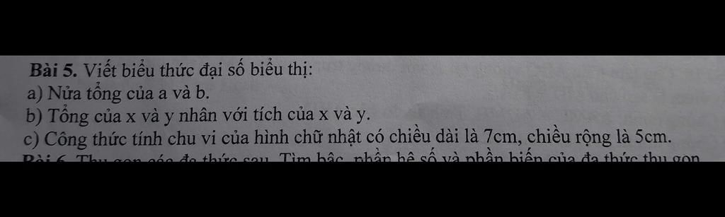 `b)` Tổng của `x` và `y` nhân với tích của `x` và `y` là: `(x+y).(x.y)`
