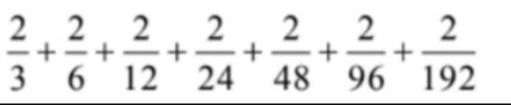 `2/3 + 2/6 + 2/12 + 2/24 + 2/48 + 2/96 + 2/192`
