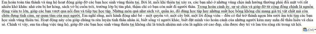 Viết đoạn văn nêu ý kiến tán thành hoạt động ủng hộ, giúp đỡ các bạn học sinh vùng thiên tai. (viết dài)
