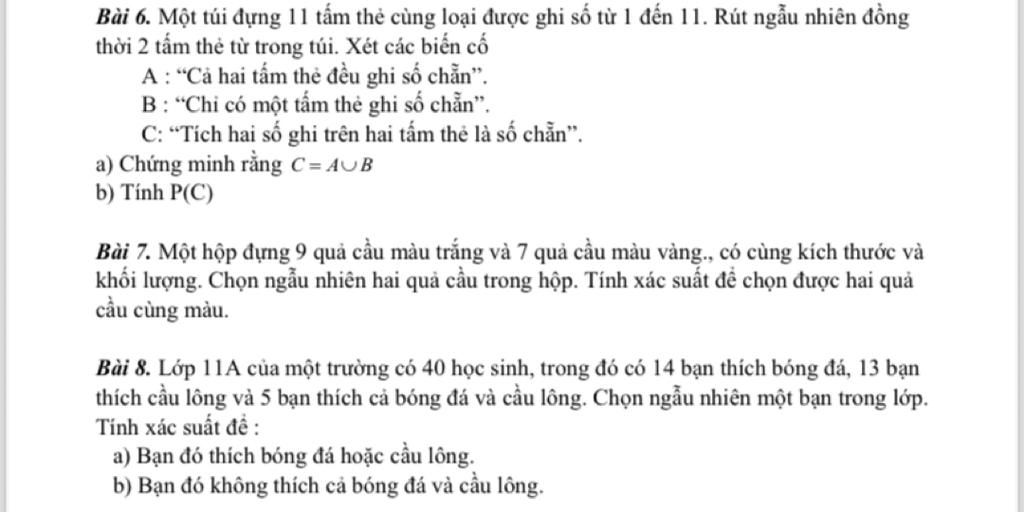 Bài 6. Một túi đựng 11 tấm thẻ cùng loại được ghi số từ 1 đến 11. Rút ngẫu nhiên đồng
