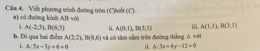 Câu 4. Viết phương trình đường tròn (C)biết (C)