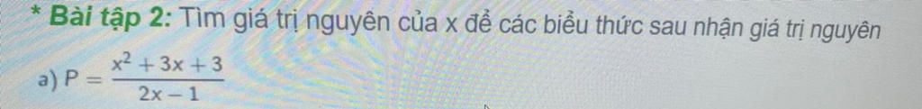 `P=(x^2+3x+3)/(2x-1)` `(x in ZZ)`
