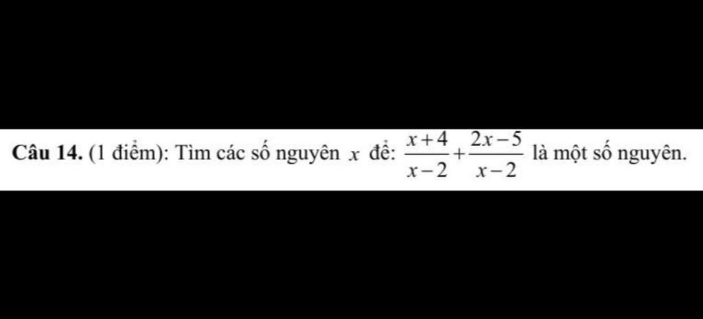 Vậy `x in {3;1;7;-3}` thì `(x+4)/(x-2) + (2x-5)/(x-2)` là một số nguyên