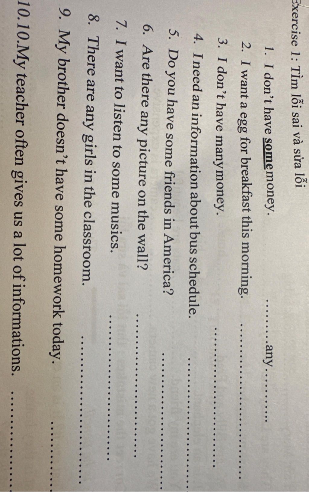9.Trong câu phủ định, dùng "any" thay vì "some".