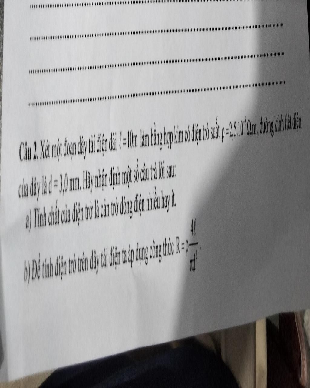 c)Nếu cắt bỏ đi chiều dài 5m thì điện trở trên dây tăng lên 2 lần.
