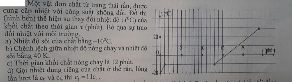 Nhiệt độ nóng chảy của chất bằng `-10^oC`.