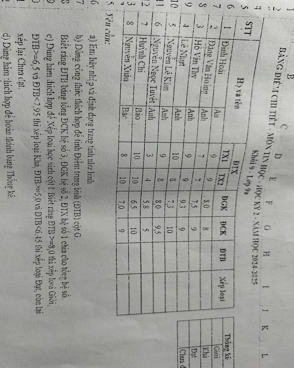 BẰNG ĐỂ CHI TIẾT - MÔN TIN HỌC - HỌC KỲ 2 - NĂM HỌC 2024 2025