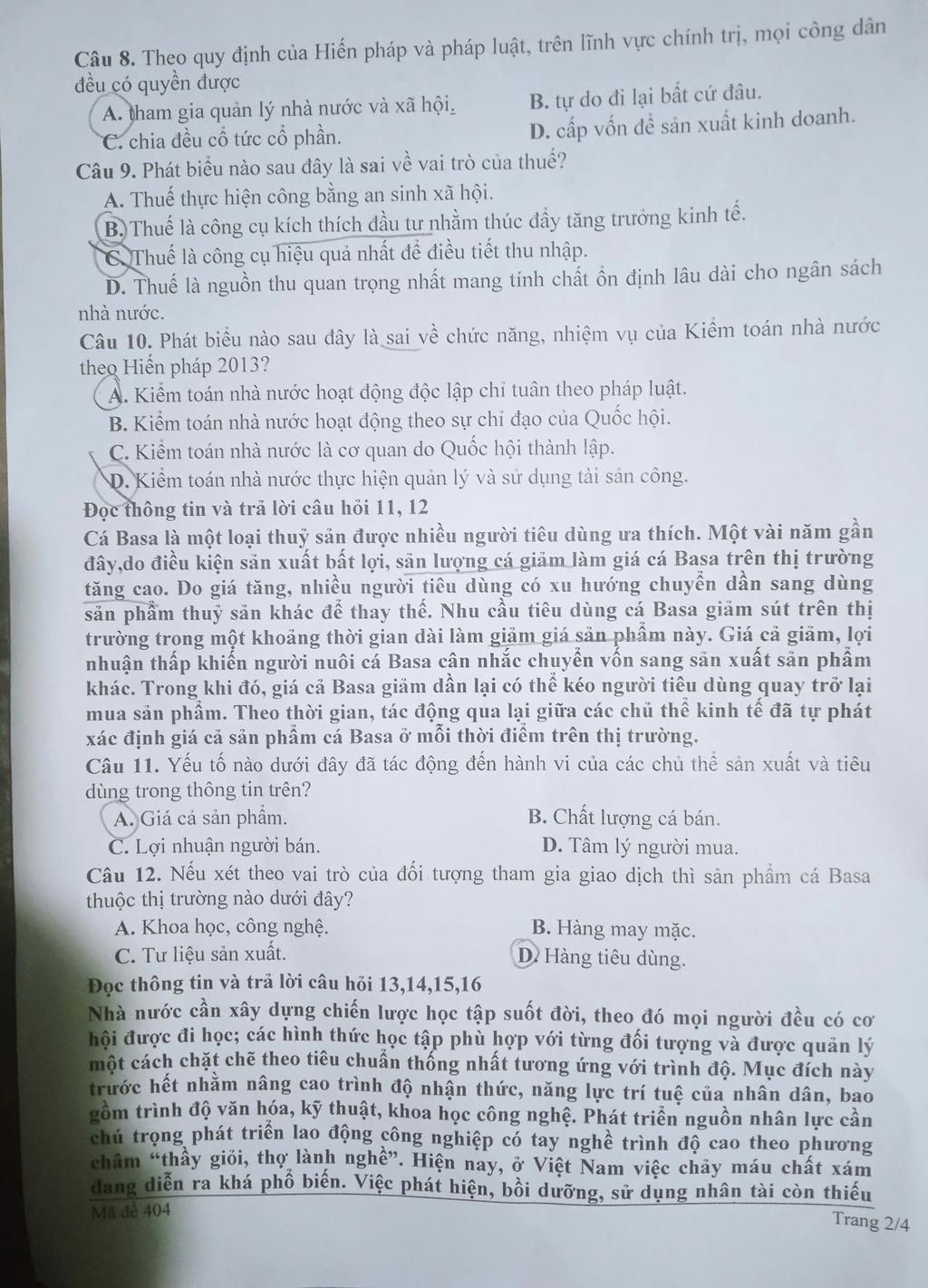 9: C → Sai vì thuế không phải là công cụ hiệu quả nhất để điều tiết thu nhập mà chỉ là một trong nhiều công cụ.