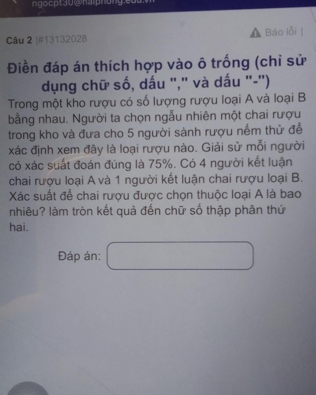 bằng nhau. Người ta chọn ngẫu nhiên một chai rượu
