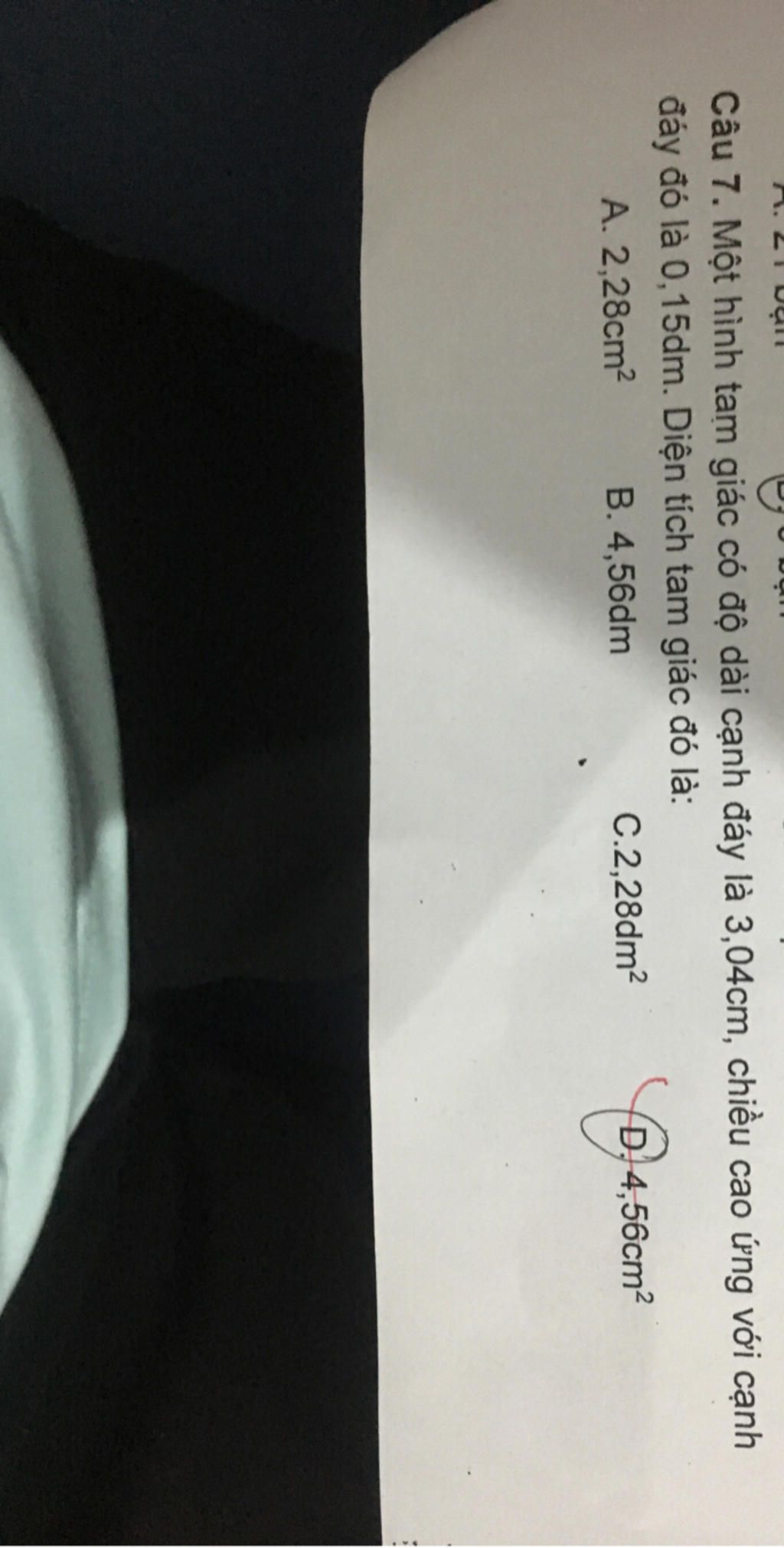 `3,04 xx 1,5 :2 = 2,28(cm^2)`