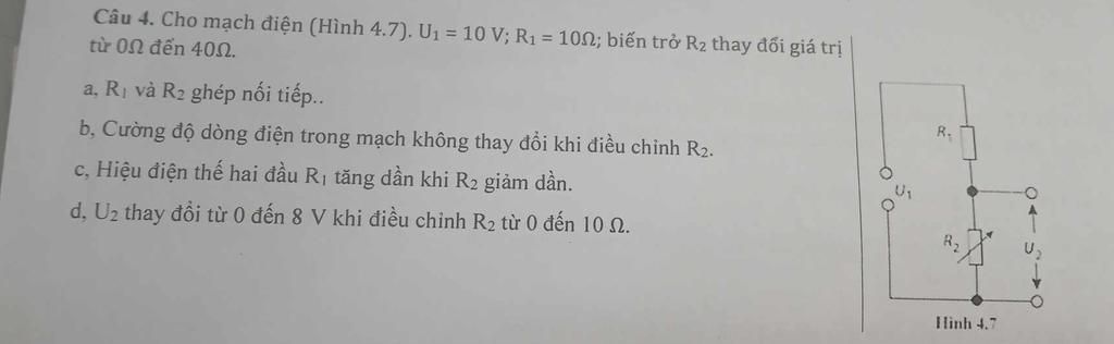 `-> U_2` thay đổi từ `0` đến `5V` khi điều chỉnh `R_2` từ `0` đến `10Omega`