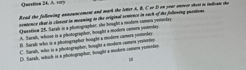 vì đây là câu mệnh đề không xác định nên cần có dấu ","=>C là đáp án đúng nhất