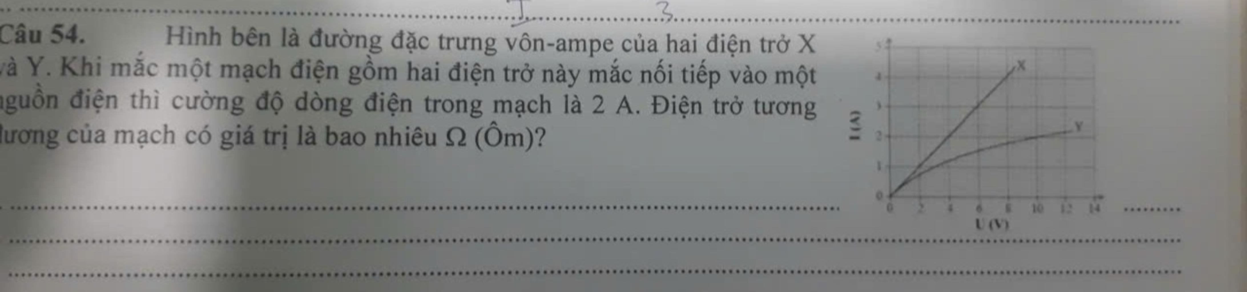Nhìn vào đồ thị ta thấy khi \(I = 2A\) thì: