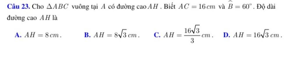 `AH = sin C . AC = sin30^@ . 16=8``(`cm`)`