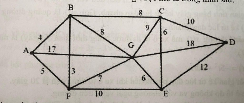 Một bác Shipper giao hàng xuất phát từ kho A để lấy hàng và đi giao tất cả các con đường sau đó lại trở về kho A để trả lại những hàng hóa mà khách hàng chưa nhận. Con đường có sơ đồ và thời gian giao hàng (phút) trên mỗi con đường được mô tả trong hình sau: