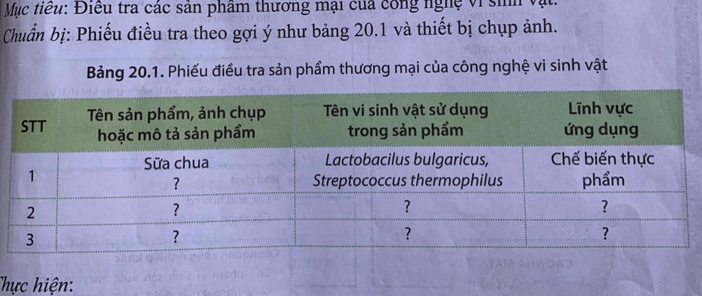 Bảng 20.1. Phiếu điều tra sản phẩm thương mại của công nghệ vi sinh vật