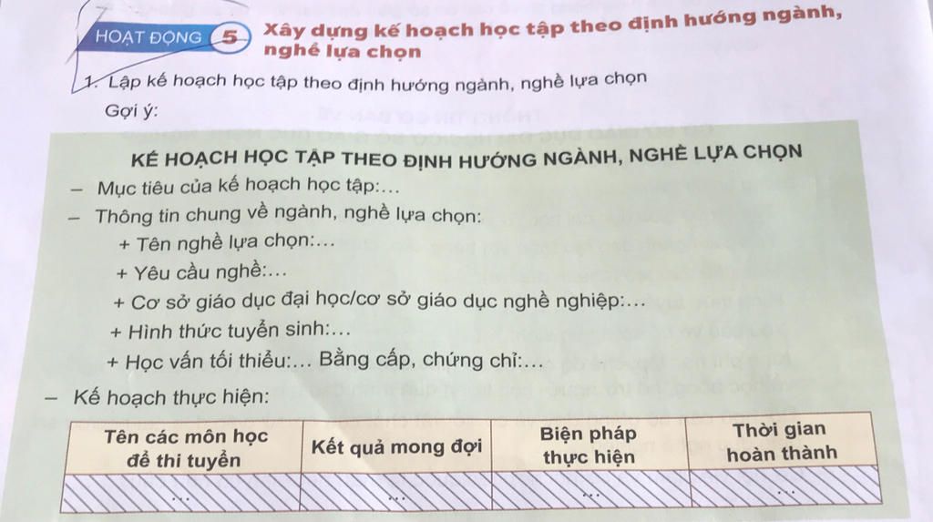 1. Lập kế hoạch học tập theo định hướng ngành, nghề lựa chọn