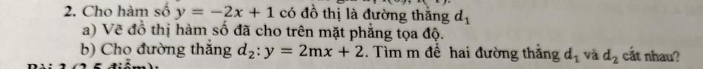 Để `(d_1)` cắt `(d_2)` thì `2m` $\neq$ `-2`