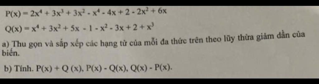 `Q(x)=x^4 + 3x^2 + 5x -1 - x^2- 3x + 2 + x^3`