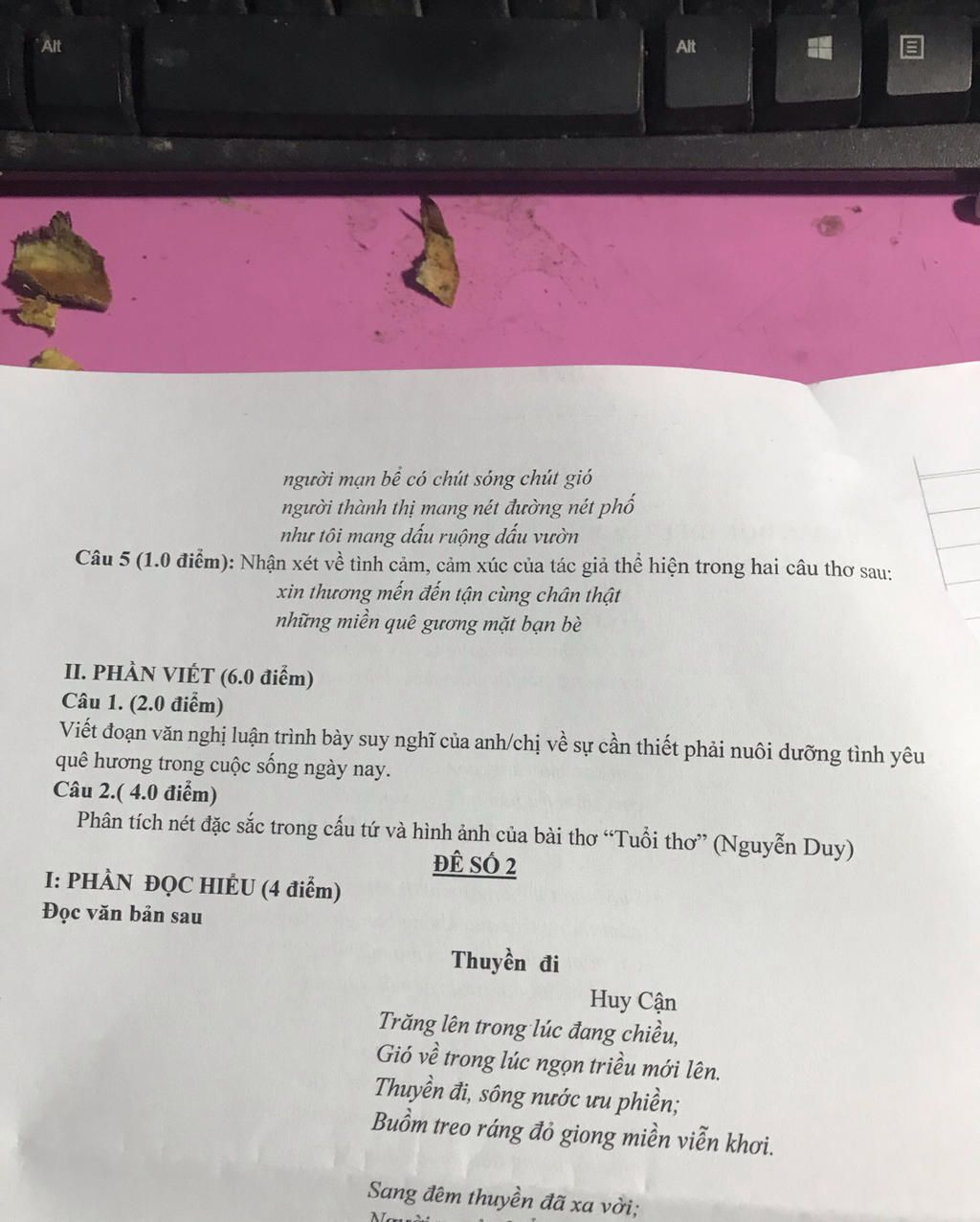 Câu 5 (1.0 điểm): Nhận xét về tình cảm, cảm xúc của tác giả thể hiện trong hai câu thơ sau: