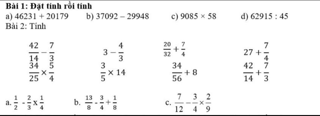`a)` `1/2 - 2/3 xx 1/4` `b)` `13/8 - 3/4 + 1/8`