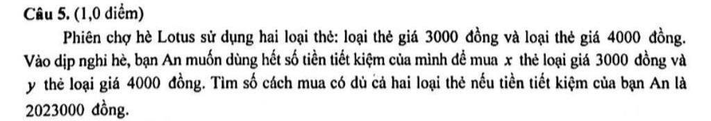 Số tiền bạn An cần để mua $x$ thẻ loại giá $3000$ đồng và $y$ thẻ loại giá $4000$ đồng là: