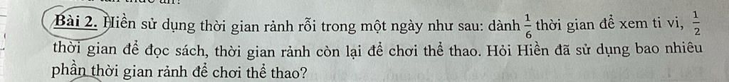 Hiền đã sử dụng số phần thời gian rảnh để chơi thể thao là :