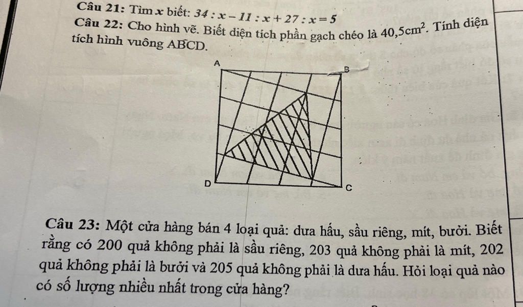 Gọi tổng số quả trong cửa hàng đó là `x (` quả `)`
