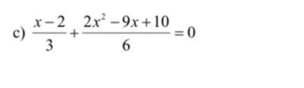 `c)(x-2)/3+(2x^2-9x+10)/6=0`