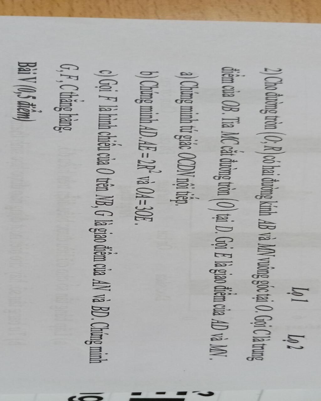 2) Cho đường tròn (O,P có hai đường kính AB và A vuông góc tại O. Gọi C là tung