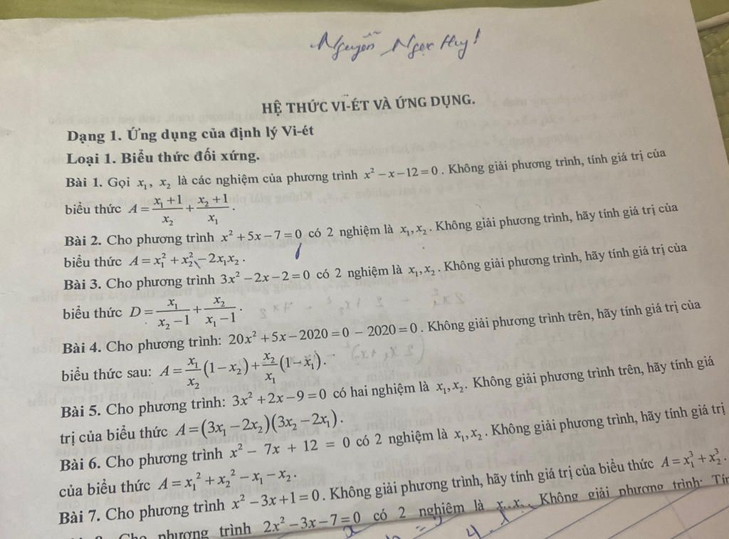 HỆ THỨC VI-ÉT VÀ ỨNG DỤNG.