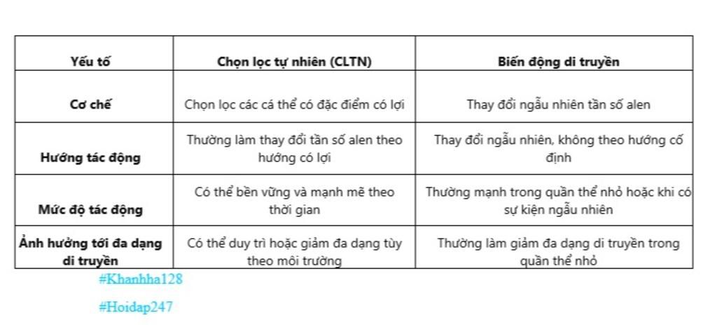 So sánh tác động của chọn lọc tự nhiên và biến động di truyền là :