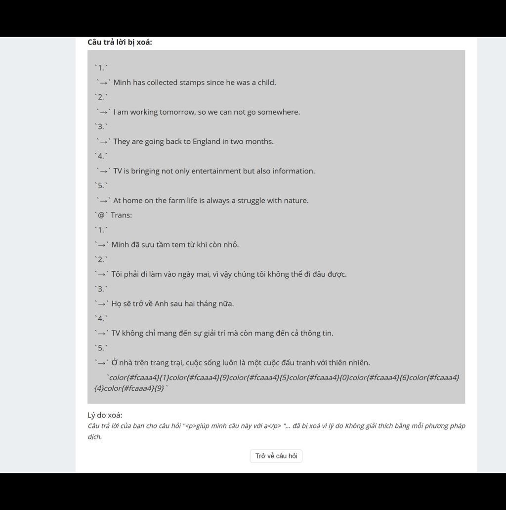 Câu trả lời bị xoá: