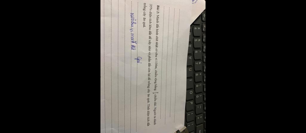 Nửa chu vi mảnh đất là : ` 130 ÷ 2 = 65 `( m )