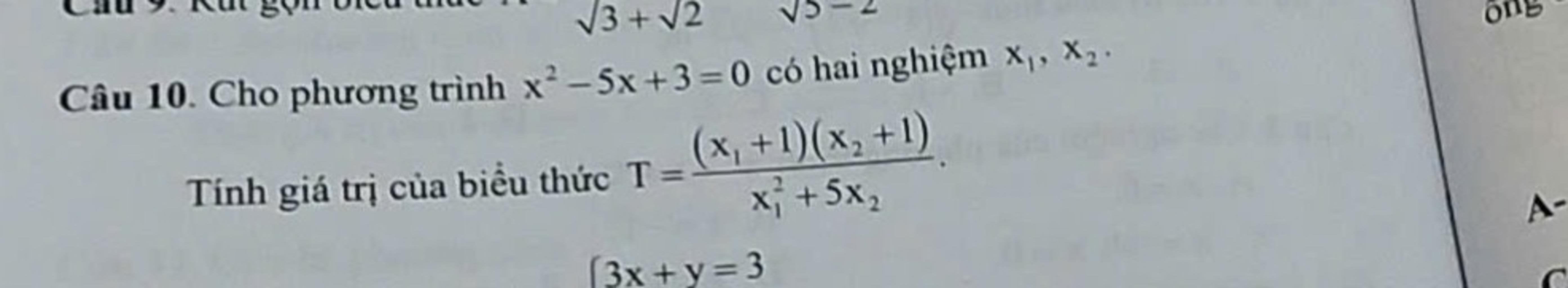 $\begin{cases}x_1+x_2=5\\x_1x_2=3\end{cases}$