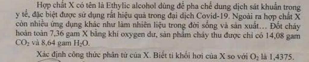 Do tỉ khối hơi của `X` so với `O_2` là `1,4375` nên ta có`:M_X=1,4375*32=46g//mol`.