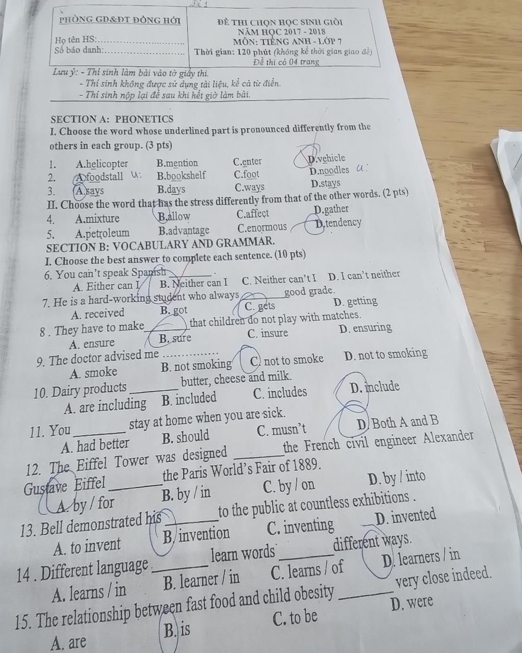 ĐỀ THI CHỌN HỌC SINH GIỎI